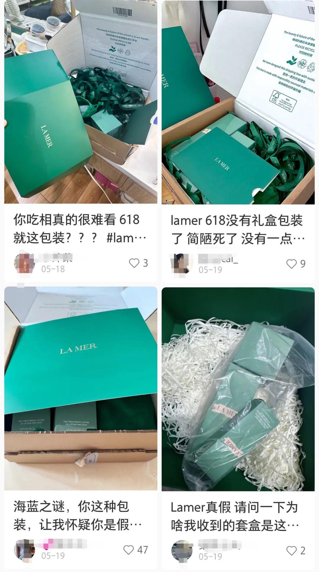 本年的618美妆苦战中,顶奢类护肤品赫莲娜、海蓝之谜先后脚堕入了口碑争议。前者因官方旗舰店的价格设置BUG直接呈现了王牌品黑绷带半价环境,尔后官旗选择主动取缔定单并赐与红包补偿;后者因不分外备注便默许用环保装发货包装,致使过在简陋、品控粗拙,而被不罕用户质疑“掉去品牌最主要的典礼感”。