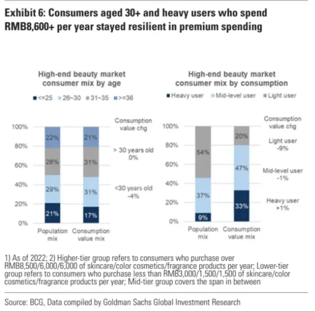 高盛研究曾经将高端美妆的消费人群分为入门级用户、中端消费者及高价值人群,别离对于应年均护肤品消费低在3000元、于3000-8500元区间及8500元以上的用户。