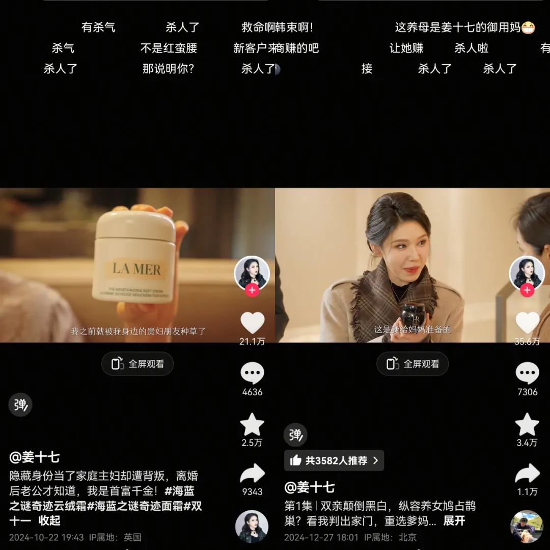 拓展中端消费者的方式放于了对于“小镇贵妇”人群的开拓上。去年双11及年货节时期,海蓝之谜与赫莲娜前后与姜十七互助多部短剧,并与多位弄笑类、剧情类短视频博主推出告白内容,完成为了于下沉市场的迅速冲破。