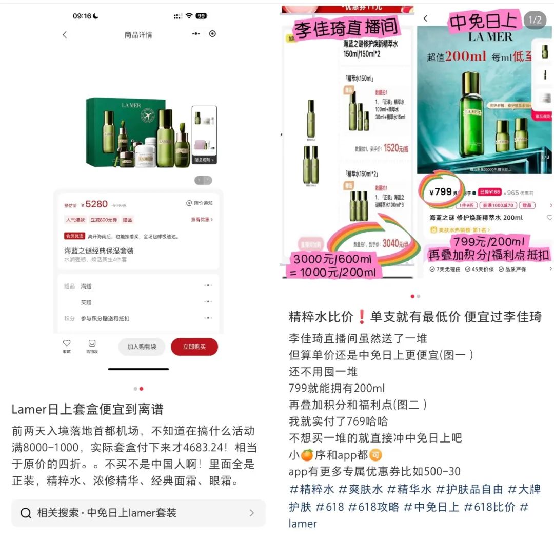 以海蓝之谜为例,去年618及双11年夜促时期,一度呈现中免日上、海口免税渠道的同款产物比官方旗舰店以致李佳琦直播间最低扣头还有要优惠数百元的环境,线上线下的价格系统十分杂乱,极年夜影响其高端美妆形象树立。
