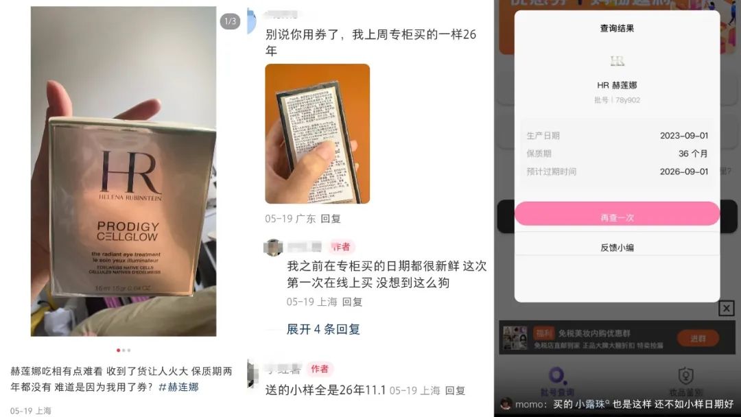 赫莲娜用户三水告诉咱们,2023年前,她一直于线下专柜采办赫莲娜,但厥后“较着觉得线下赠品前提变患上苛刻,办事质量下滑”,改于线上渠道采办,但“去年双11时期官方旗舰店购入的产物是旧货,有用期只有一年半,如许固然也不敢再囤货了。”