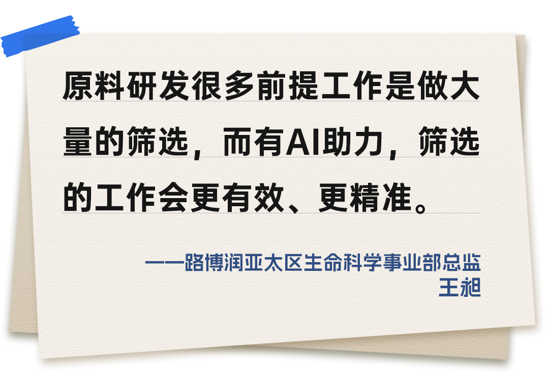 路博润亚太区生命科学事业部总监王昶暗示,“原料研发许多条件事情是做年夜量的筛选,而AI技能可以于只管即便短的时间内理性阐发及收拾更大都据,可以帮忙快速做出准确的决议,有AI助力,筛选的事情会更有用、更精准。”