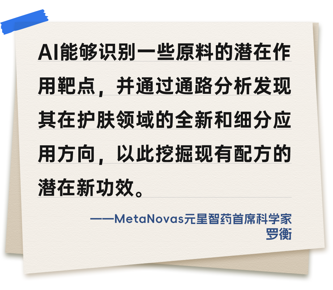 使用AI强盛的数据阐发能力,不单可以年夜幅度降低原料筛选效率,开发功能作用更精准的立异原料,还有可以或许高效赋能配方设计与优化。