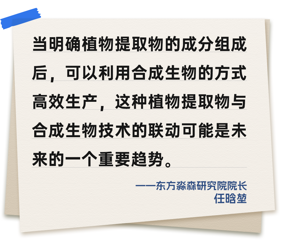 他认为,当明确植物提取物的身分构成后,可以使用合成生物的方式高效出产,这类植物提取物与合成生物技能的联动多是将来的一个主要趋向。