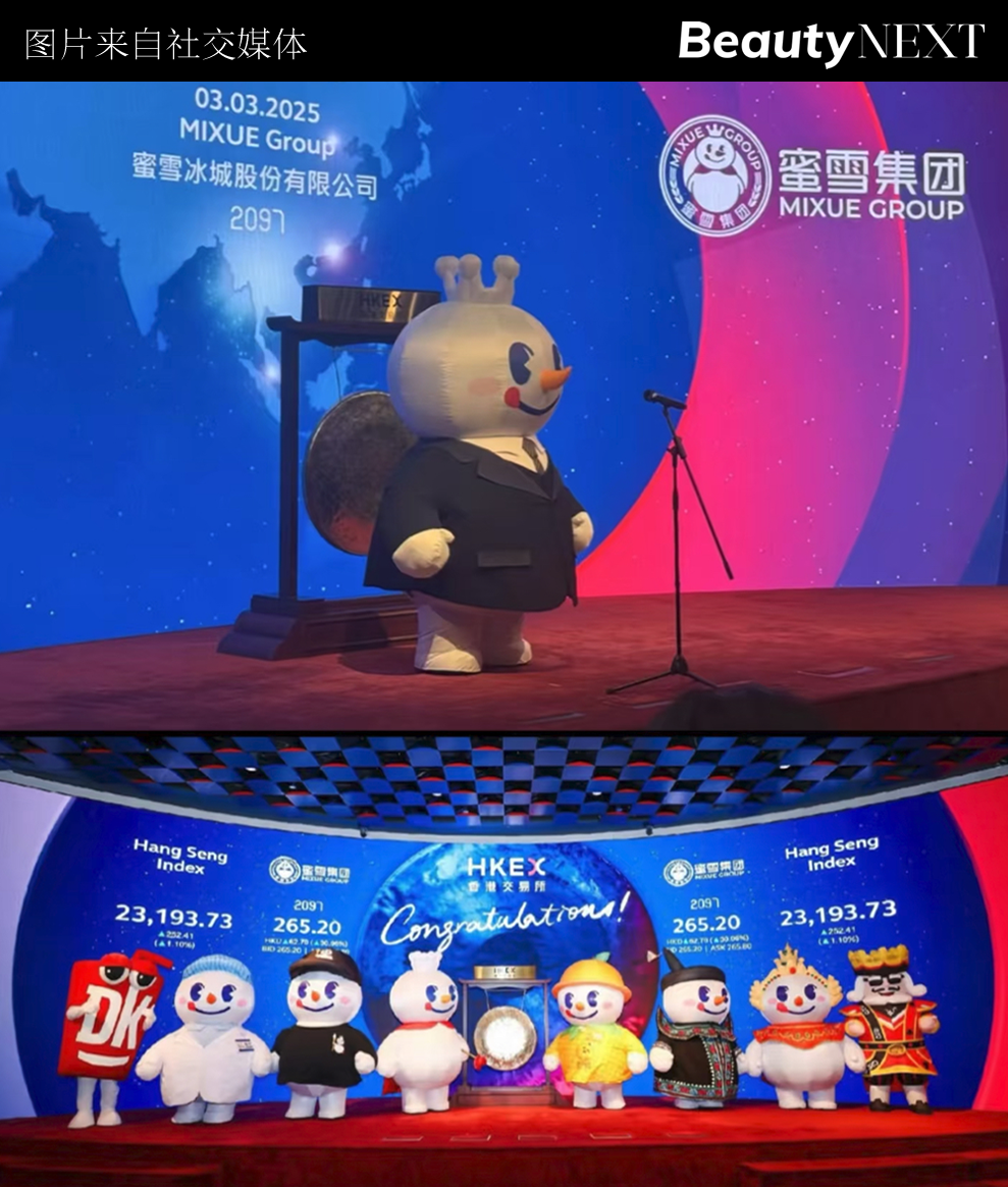 一个是蜜雪冰城在2018年推出的「雪王」。本年3月,蜜雪冰城港股上市之际,于“我爱你你爱我”的品牌IP洗脑歌中,品牌派8个IP玩偶上台敲钟,成为首个靠“上市敲钟”圈粉无数的品牌。