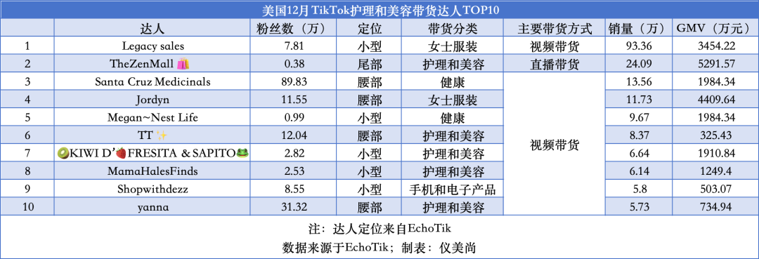 从带货分类来看,12月登上照顾护士及美容TOP10榜单的美国达人中,照顾护士及美容垂类达人占比50%,除了此以外,女士服装、康健类达人,于照顾护士及美容产物发卖中也做出了较年夜孝敬。